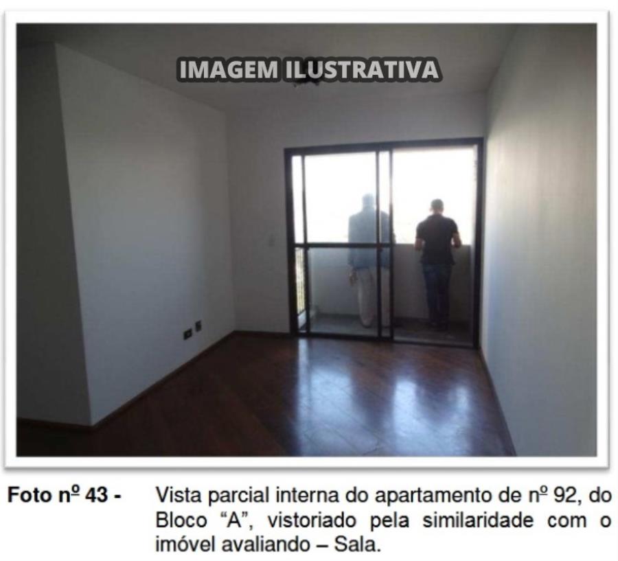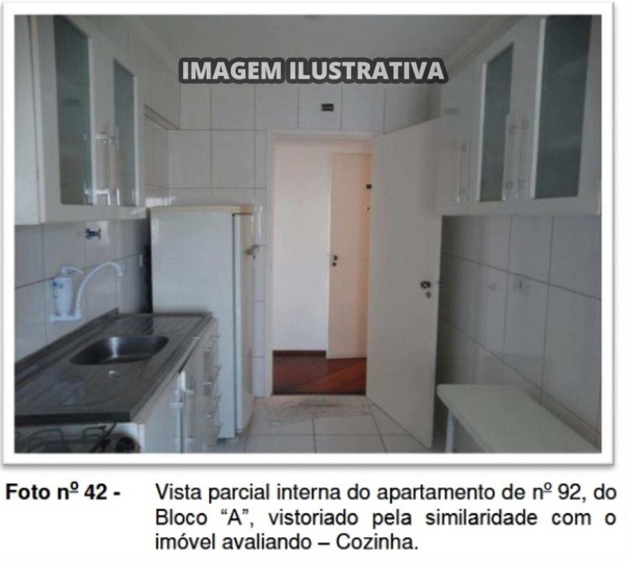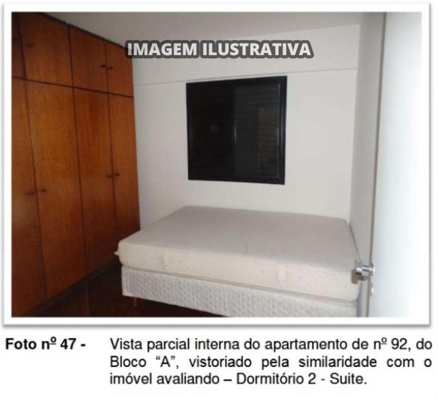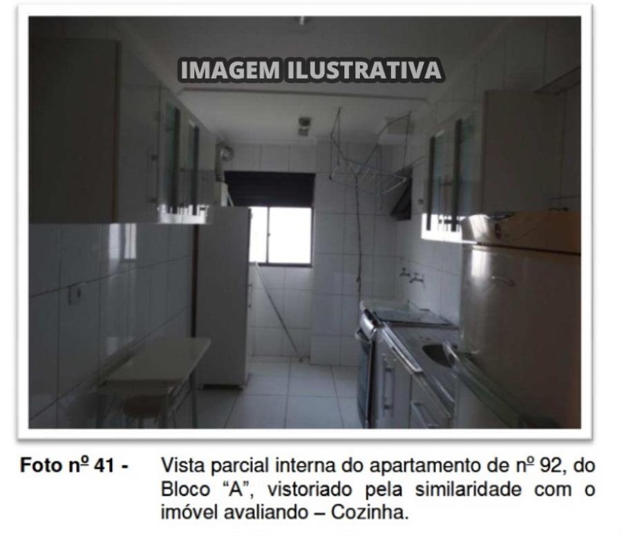 De acordo com o laudo de avaliação, o apartamento é composto por 02 dormitórios, 01 suíte, sala para 2 ambientes, banheiro social, cozinha, lavanderia e varanda. O condomínio possui salão de festas com bar, salão de jogos, quadra poliesportiva, playground, área de convivência/churrasqueira, vestiário dos funcionários, lavanderia, apartamento do zelador, sala de estar e vestiário com sanitários.